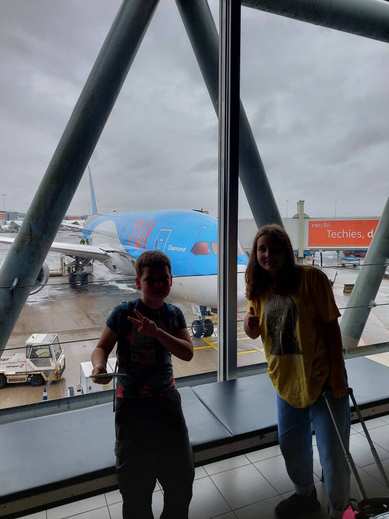 Wat anders was, was dat we als eerste eruit mochten en tevens niemand anders bij de receptie was. Het inchecken was totaal geen gedoe en we waren supersnel klaar. Totdat ik het bleke verschrikte gezichtje van Dana zag; ze was haar rugzakje met papa-knuffel, oplader en earpods vergeten in de transferbus! Onmiddellijk moest ik een lichte paniekaanval onderdrukken! Kut, kut, KUT! Wat nu? Waar the fuck ben je Bram! Ik heb je nodig! Ik kan dit allemaal helemaal niet alleen. Zie je nu wel! Altijd als ik denk dat het lukt, gaat het mis! Ik mis je en ik wil in je armen uitelkaar vallen van vermoeidheid. Maar het kan niet, het mag niet en Dana voelt zich al kut genoeg zonder een paniekerige moeder. Dus daar gaan we; Tui app, weinig respons. Tui nummer 20 minuten wachttijd en uren durende keuzemenu's. Mevrouw van de receptie, superbehulpzaam, ander nummer opgezocht, dat bellen, in de wacht. Terwijl ik in de wacht hang, zie ik de teleurgestelde blikken van de bezwete kinderen. Onze spullen, alle blaadjes en boekingspapieren verspreid over een tafeltje in de lobby. En ik wil schreeuwen! Schreeuwen en wachten op hulp.